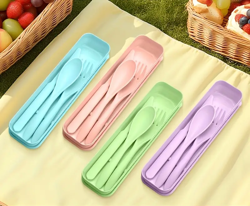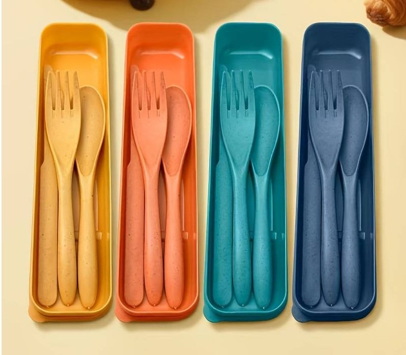 V sadě najdeš lžíci, vidličku a nůž – vše vyrobené z kvalitního potravinářského plastu, který je bezpečný a šetrný k životnímu prostředí.