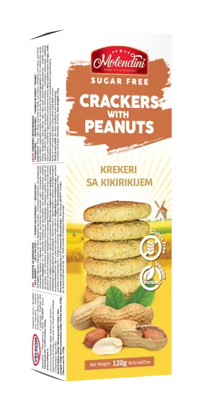 Složení: mouka (rýžová mouka, pohanková mouka, kukuřičná mouka, extrudovaná kukuřičná mouka a mouka z prosa), rostlinný (palmový) tuk, kukuřičný škrob, mleté arašídy 4,5 %, mletá chia semínka (Salvia hispanica), citrusová vláknina, sůl, kyselina citronová, konzervant (sorbet draselný), kypřicí látky (hydrogenuhličitan sodný a pyrofosforečnan sodný), stabilizátor (guarová guma), emulgátor (sójový lecitin) a arašídové aroma.