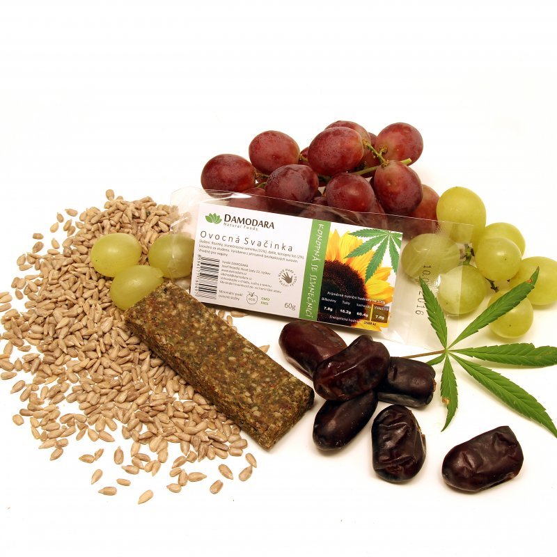 Složení: Rozinky, švestky, slunečnicové semínko, datle, pufovaný amarant (6,4%), konopný protein (4%), kyselina sorbová