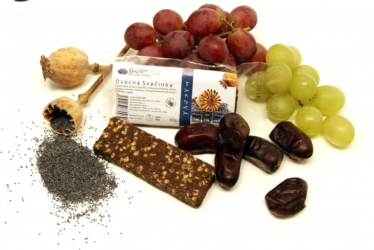 Složení: Datle, rozinky, kukuřičné extrudované křupinky, mák (10%), skořice