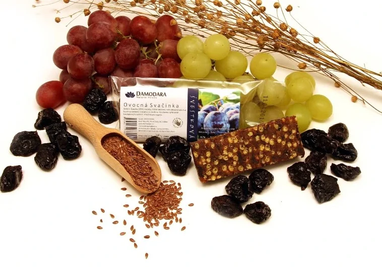 Složení: Švestky (25%), rozinky, lněné semínko, kukuřičné extrudované křupinky, kyselina sorbová