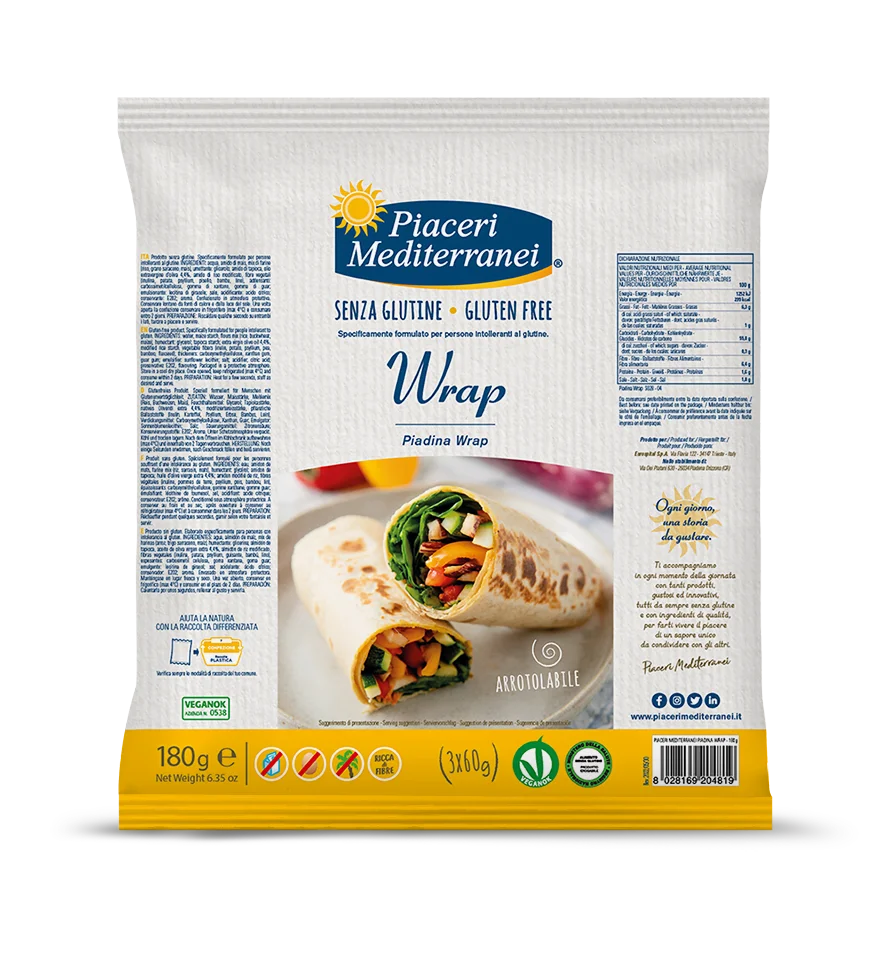 voda, kukuřičný škrob, směs mouky (rýže, pohanka, kukuřice), zvlhčující látka: glycerol; tapiokový škrob, extra panenský olivový olej 4,4 %, modifikovaný rýžový škrob, rostlinná vláknina (inulin, brambory, psyllium, hrách, bambus, len), zahušťovadla karboxymethylcelulóza, xantanová guma, guarová guma; emulgátor: slunečnicový lecitin; sůl, okyselující látka: kyselina citronová; konzervant: E202; aroma.