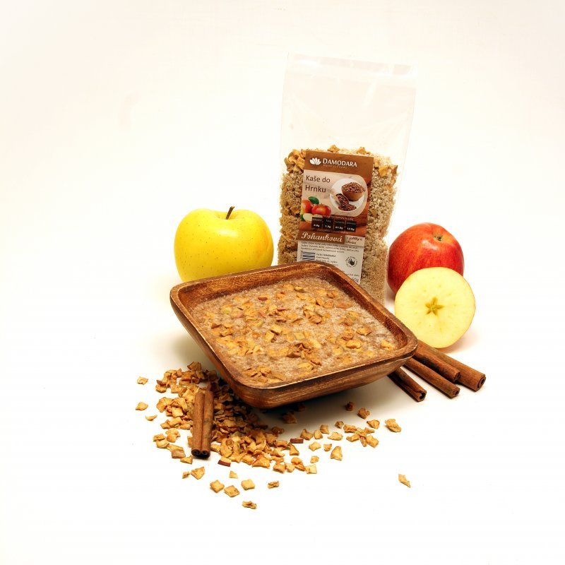 Pohanka (82%), sušená jablka (16%), skořice (2%)