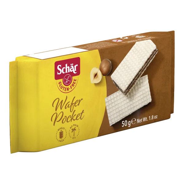schÄr oplatky wafer pocket, s lískoo. krémem, bez lepku, 50g (ct 20) schÄr oplatky wafer pocket, s lískoo. krémem, bez lepku, 50gSCHÄR – oplatky s lískooříškovým krémem, bez lepku, 50g